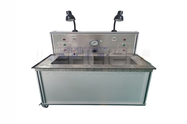 氣密性損試驗臺,主要用于過濾器殼體氣壓密封性能的測試。試驗臺臺架采用工業級高強度鋁合金型材,框架結構設計,結構緊湊、外形美觀,試驗臺臺面及試驗液槽采用不銹鋼拉絲板制作而成,試驗管路采用衛生級不銹鋼管。試驗臺采用手動操作模式;操作間設計有安全防護門。
